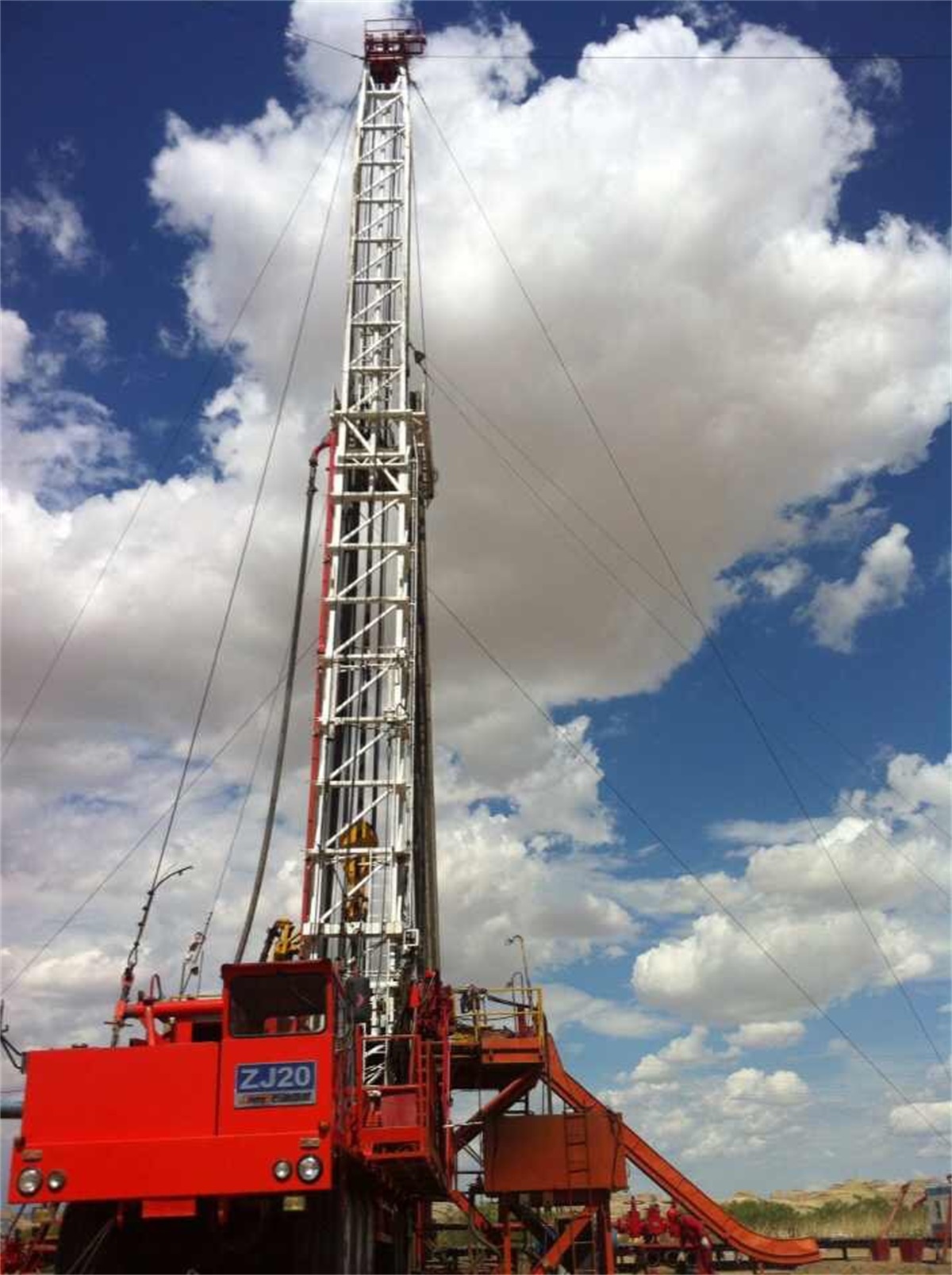 正通油氣施工現場井架設備與藍天白云融合在一起,相得益彰,矗立于云端,浮空一切,那種感覺真是美不勝收!